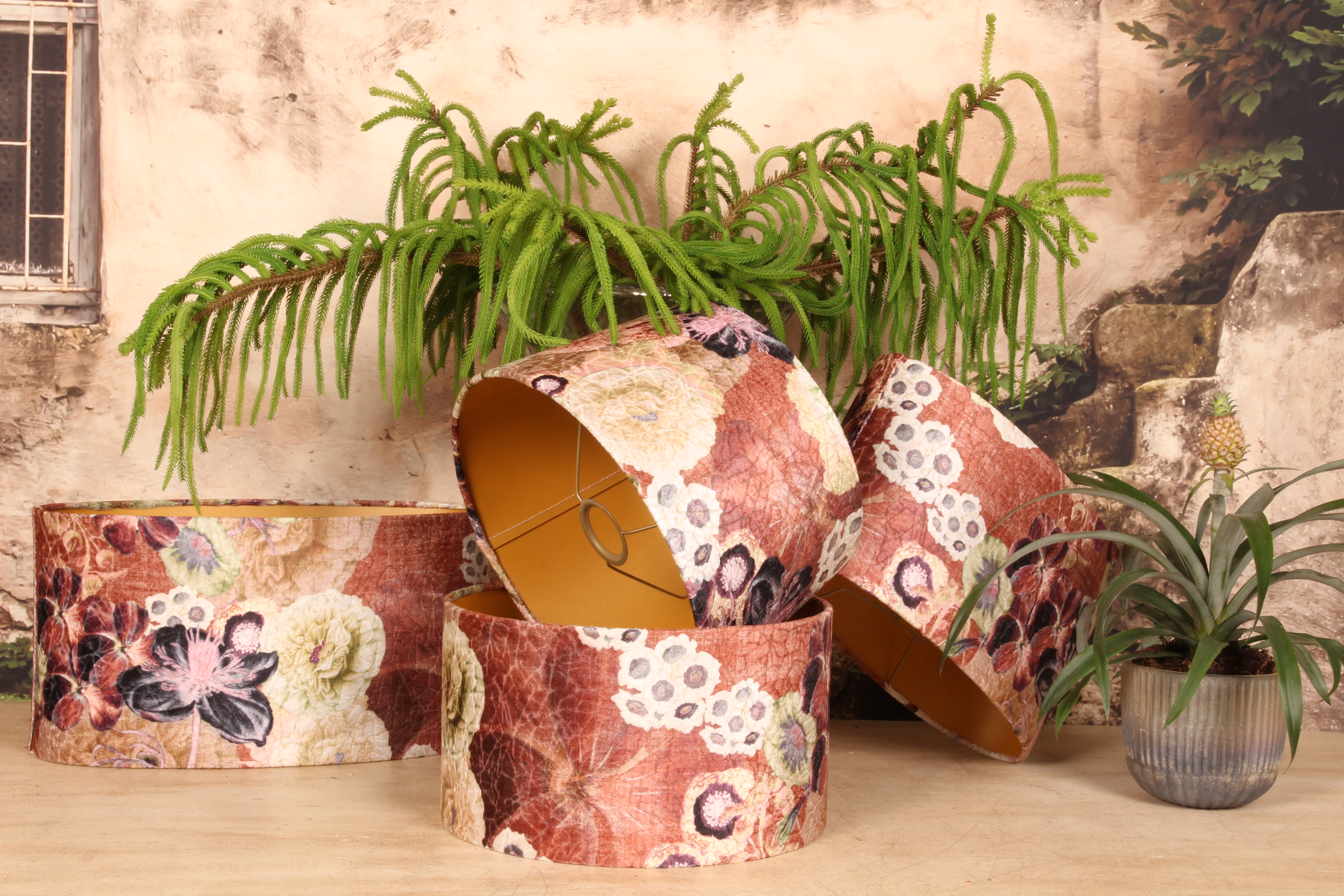 Onze collectie bevat ook fluweel in verbluffende tinten, zoals groen, roze, zwart, grijs, blauw, paars en goud, voor verschillende smaken, inclusief kleine lampenkappen voor een compactere opstelling. Wat ons onderscheidt, is dat al onze lampenkappen, of het nu gaat om tafellampen of plafondlampen, hier in Nederland met de hand worden gemaakt, wat zorgt voor uitzonderlijk vakmanschap en aandacht voor detail.